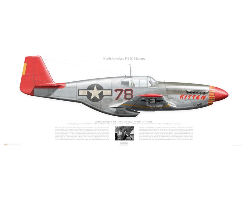 P-51C-10NT Mustang, 43-025072 / 78 "Kitten" - 332nd FG, 302nd FS - Italy. Flown by Tuskegee Airman Col Charles E. McGee Squadron Lithograph